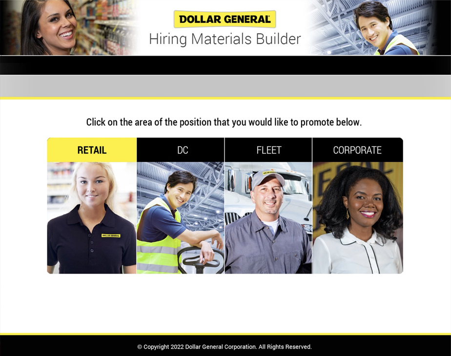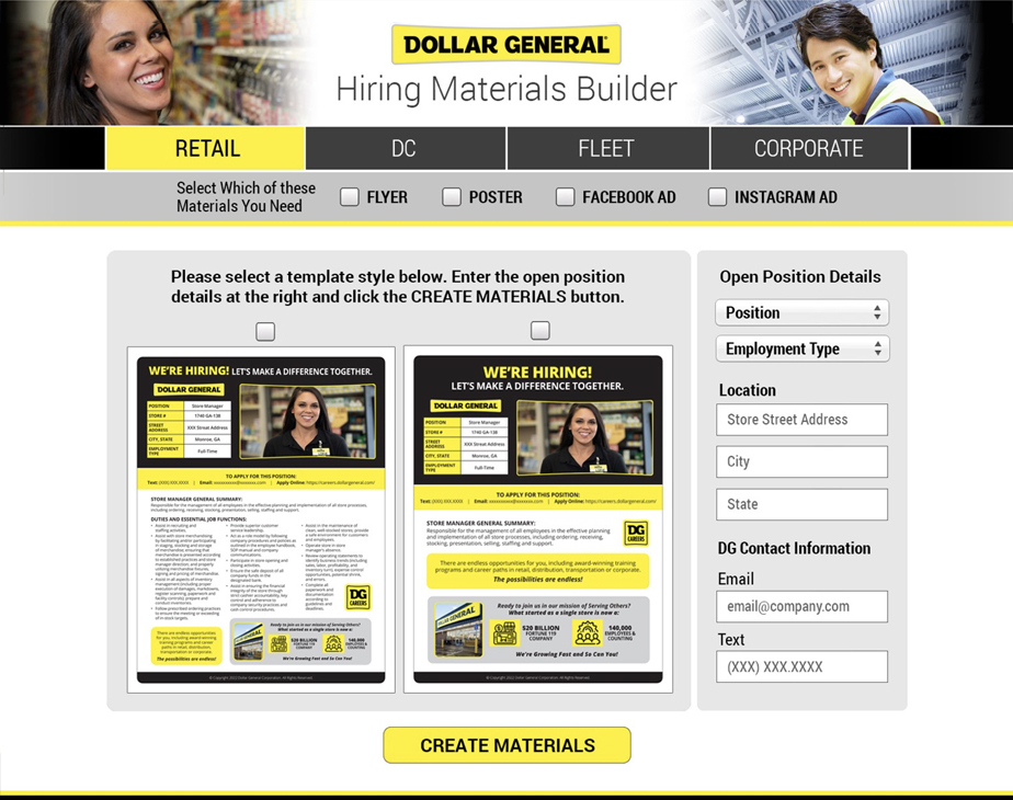 Dollar General was launching a campaign to recruit employees at every level of the company at all locations. In order to make a bigger impact, they also announced a new Employee Value Proposition. We developed the messaging and look for the EVP launch presentation, flyers, emails, and animated gifs for social media.
