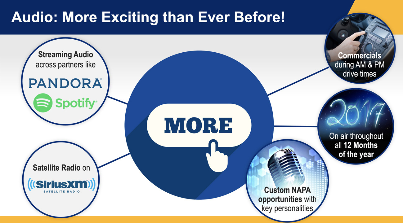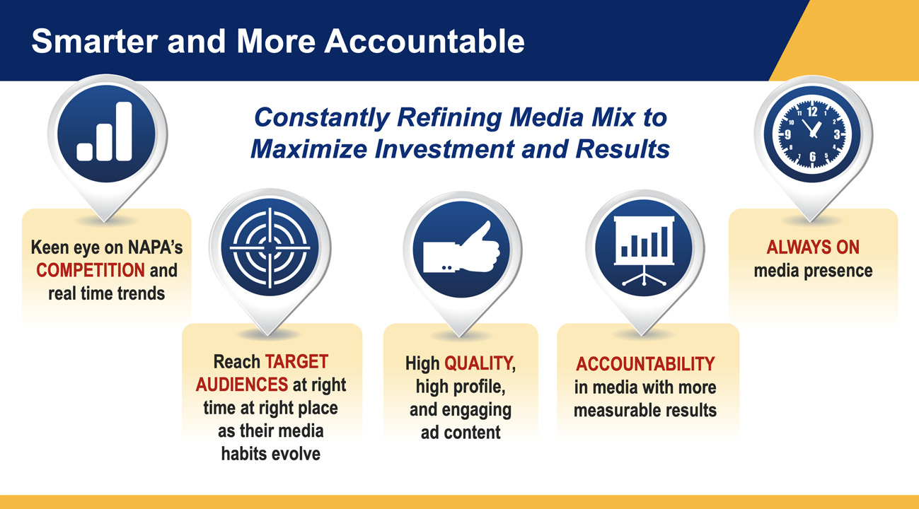 Compass Creative provides creative presentation support to NAPA Auto Parts on a regular basis. When it’s time to educate and motivate their sales teams they call us to create dynamic presentations for the meetings and training sessions. We design themed templates and create presentations both from scripts and from content provided by the client.