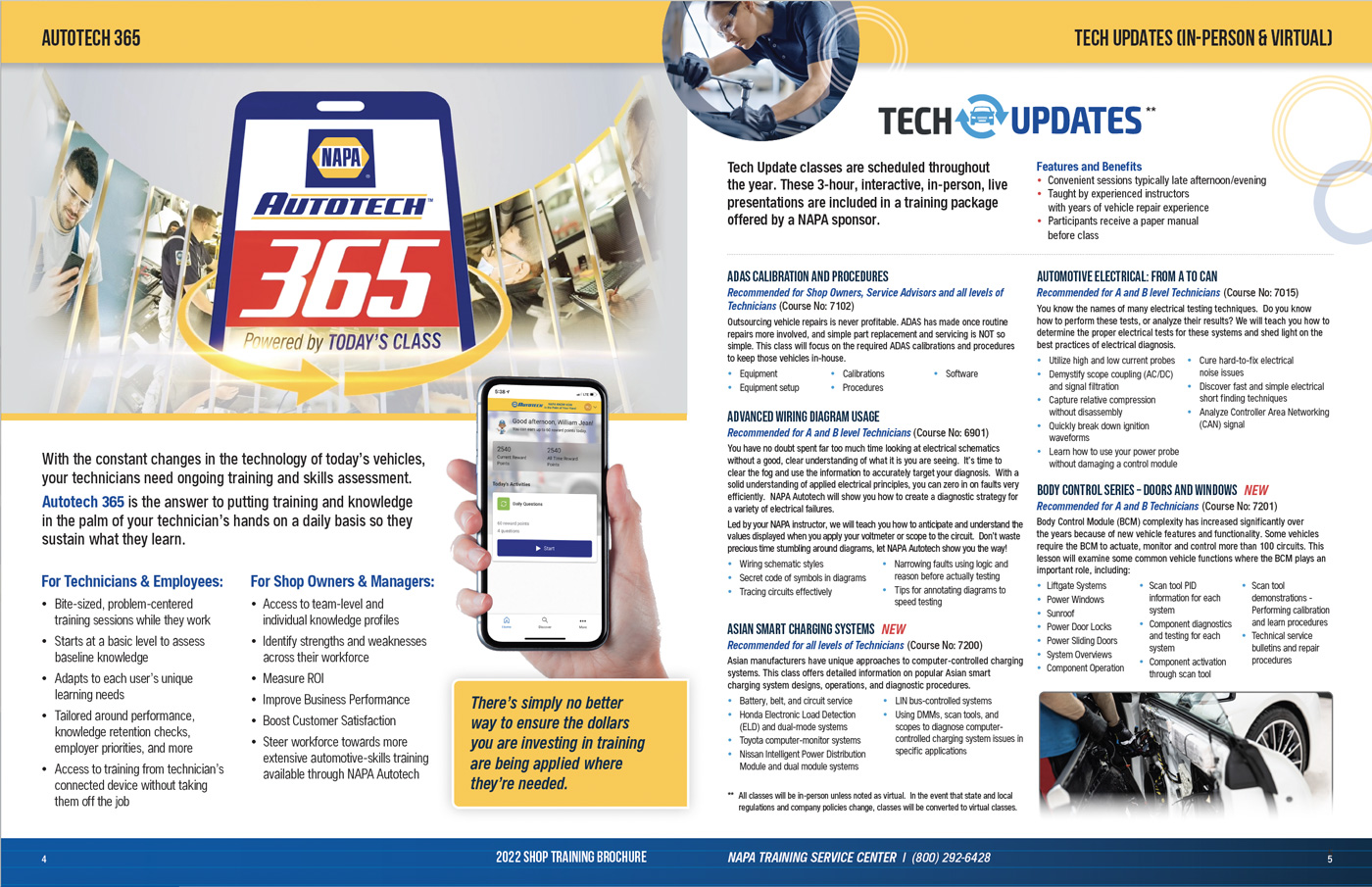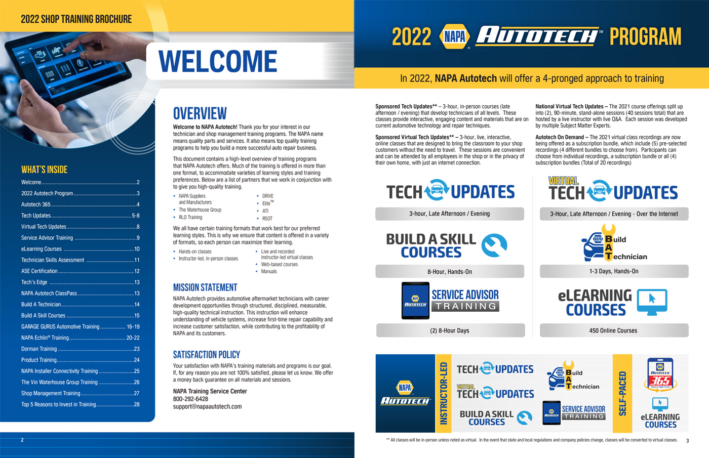 Compass Creative has been assisting NAPA Autotech with marketing their Automotive Shop Training for over a decade. We are very familiar with their audience and their content and we put together a yearly brochure that goes out to NAPA Shop customers. It is important to let them know about all the courses and programs they have access to through NAPA Autotech