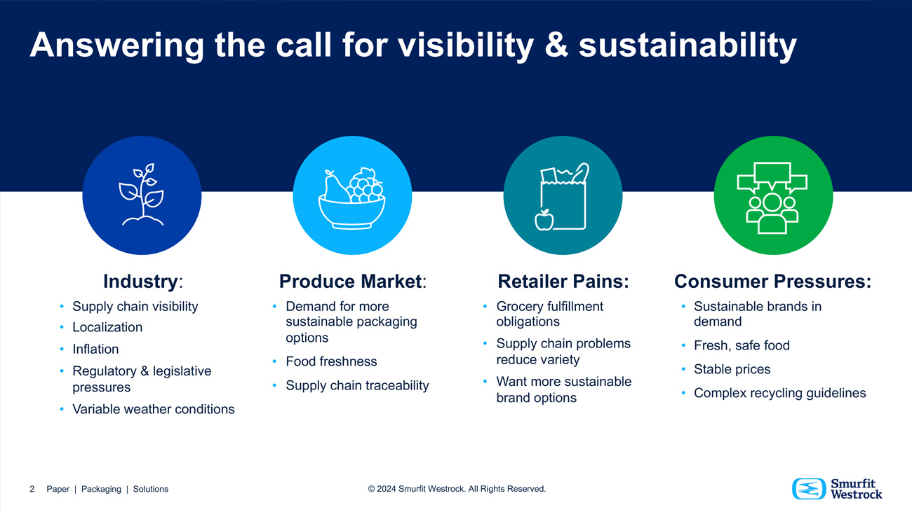 Smurfit Westrock is a global leader in packaging products and design for products ranging from high-end beauty, electronics, home goods, and food and beverage. This was a product marketing presentation for a new moisture-resistant packaging for food products. The colors, format, and imagery were designed to communicate freshness and innovation.